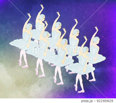 白鳥の湖 白鳥の群衆のイラスト 部隊背景付