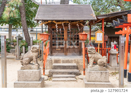 機織りや染物の伝承(漢織姫と呉織姫)の地に創立した津門神社 境内社 弁財天社 西宮市津門西口町