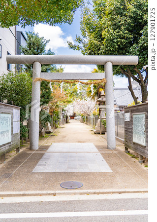 機織りや染物の伝承(漢織姫と呉織姫)の地に創立した津門神社(つと神社) 鳥居 西宮市津門西口町