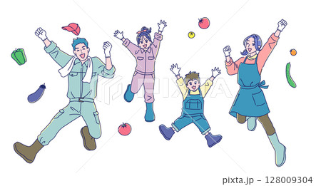 Family portrait, happy parents children together, colorful casual clothing. Man holds young girl, woman boy waving, cheerful diverse family illustration. Ethnic smiling, modern dress, joyful cartoon