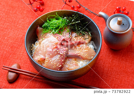 ブリ(ぶり、鰤)のづけ丼、漬け丼、海鮮どんぶり、ブリの漬け丼、鰤の刺身丼。