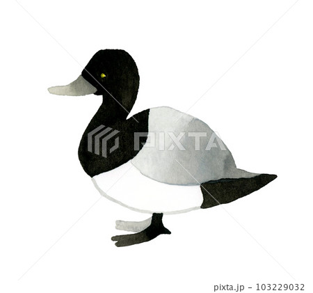 スズガモのオス かわいい・ゆるい動物の手描き水彩イラスト素材