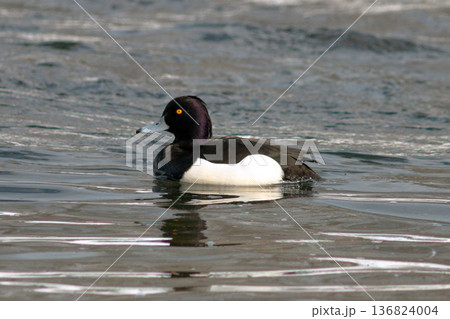 キンクロハジロのオスが川面を泳ぐ姿|日本の野鳥・水辺の自然風景