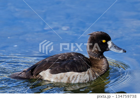川を泳ぐキンクロハジロの雌