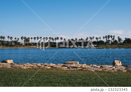 [赤穂海浜公園]レトロなベンチが置かれた風景