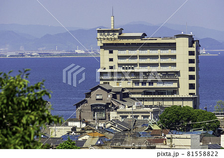 【重要伝統的建造物群保存地区】鞆城跡から見た福山市鞆町伝統的建造物群保存地区と鞆港3 広島県福山市