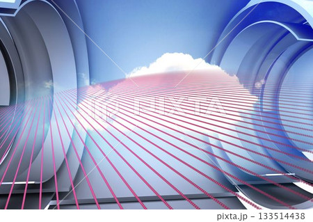 Pink pattern with cloud design on a futuristic structure