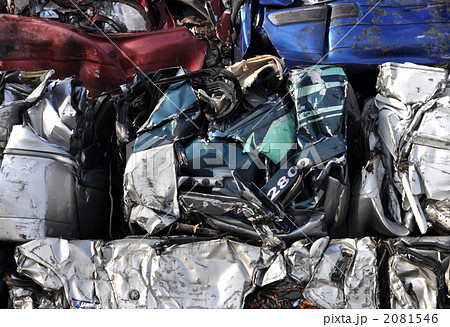 プレスされた自動車のスクラップ