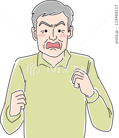 パステル調の人物_高齢男性_おじいちゃん_怒る