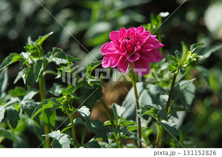 大輪のユリ 濃いピンク色の花 オリエンタルハイブリッド系 自然背景