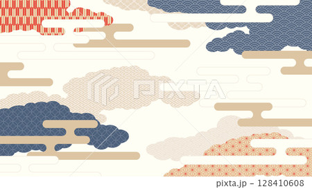 16:9の背景素材:日本の伝統的な柄を集めた霞がかかった雲の形の風景