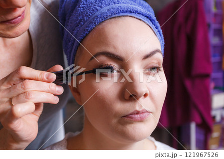 Woman getting her make up done by expert