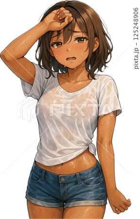 濡れた白Tと夏の午後