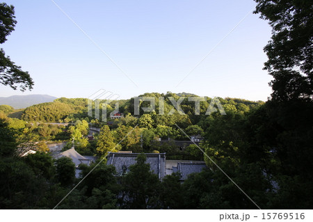瀧谷不動尊 法楽殿の屋根が見える風景 大阪府富田林市