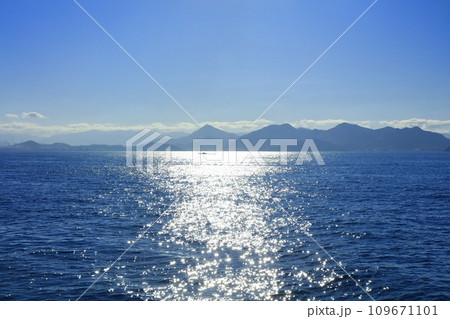 【香川県】朝の観光船から見たキラキラ輝く(瀬戸内海、瀬戸内)の眺め