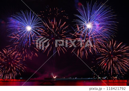 花火と瀬戸内海(広島県尾道市)
