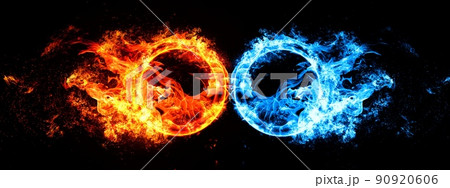 赤の火と青の火が渦巻く3Dイラスト