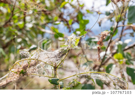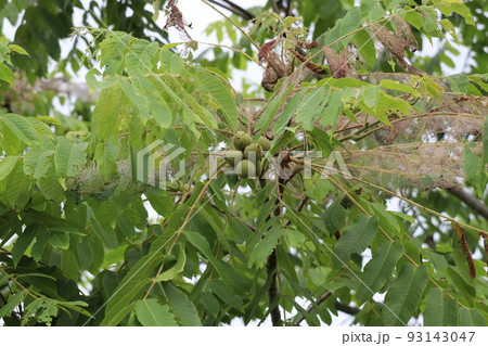 アメリカシロヒトリの被害に遭う胡桃の木