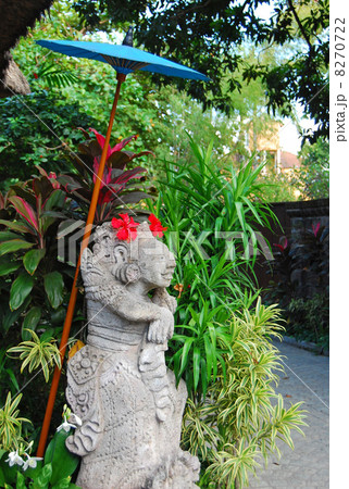 石像 石彫り 彫刻 ハイビスカス 南国 花 赤色 髪飾り ファッション バトゥブラン バリ島 インドネシア 神様 神々 店先 火山性凝灰岩 芸術 アート 工芸品 インテリア アウトドア ハンディクラフ