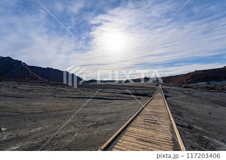 凍結した木道 砂千里ヶ浜 冬の阿蘇の風景