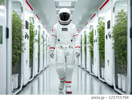 宇宙で植物を育てる宇宙飛行士のイメージ素材