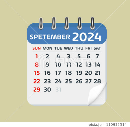 September 2024 Calendar Leaf. Calendar 2024 in flat style
