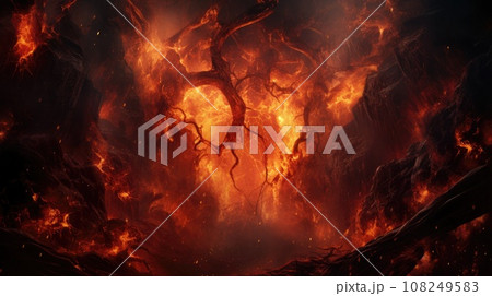 Hell concept, a place regarded in various religions as spiritual realm of evil and suffering, often traditionally depicted as a place of perpetual fire beneath the earth where the wicked