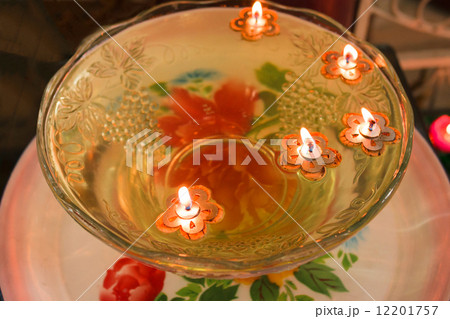 マレーシア マラッカの寺院の花びらの形の灯明 ろうそく