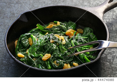 ほうれん草の松の実とレーズン炒め