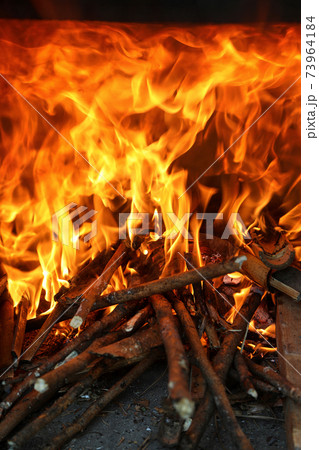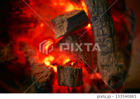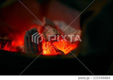 真っ赤に燃える炭火素材