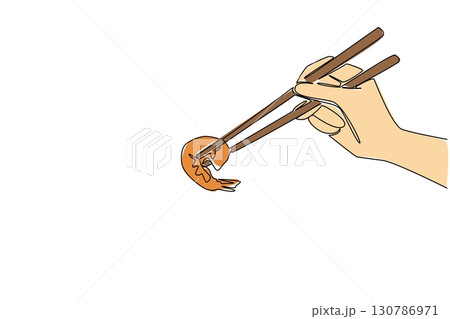 Single continuous line drawing shrimp clamped by wooden chopsticks. Enjoy a savory and protein packed meal. A savory delicacy. Delicious. National Shrimp Day. One line design vector illustration