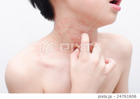 Little girl has skin rash allergy and itchy on her arm from mosquito bite