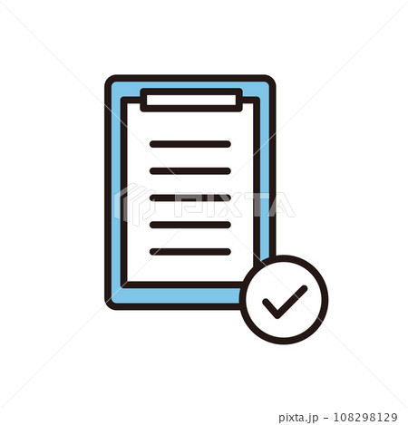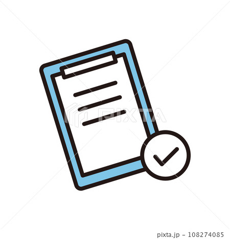 アンケートのチェックリスト、ペンとバインダーのイラストカラー