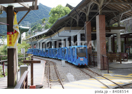 台北近郊の山間に沸く温泉地、烏來:烏來特定風景區の観光に便利なトロッコの乗り場