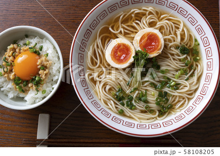 醤油ラーメンと、ひきわり納豆ごはん