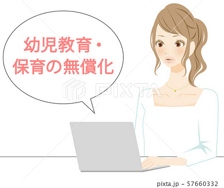 幼児教育 保育の無償化 制度 子ども 育児 家族 パソコンで調べる女性