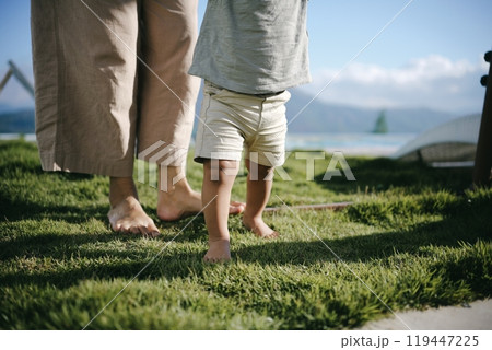 Joyful Moments A Toddlers First Steps on the Soft, Green Grass Outside