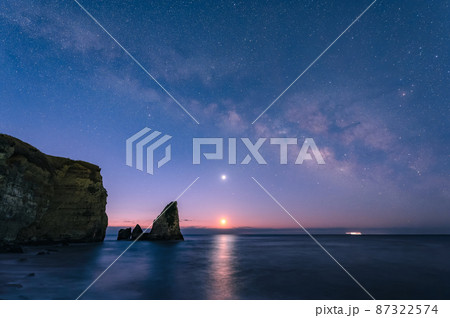 大波月で見る天の川と月と金星と火星