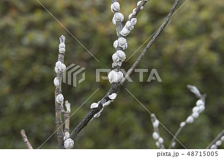 ハナミズキの枝に寄生しているカイガラムシ