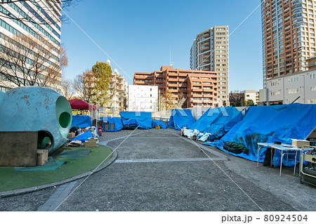 東京都渋谷区美竹公園に設置されたホームレスのテント