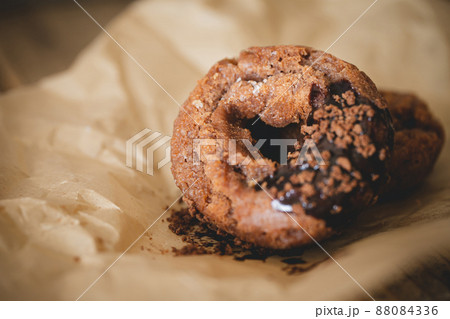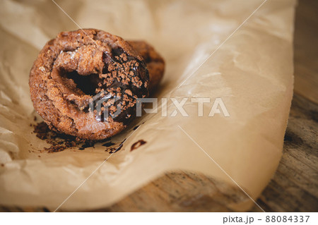 チョコレートの焼きドーナツ