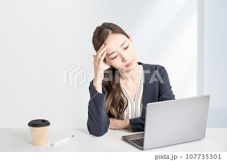 複雑な作業と仕事、頭が痛い。白いシンプルなオフィスの背景