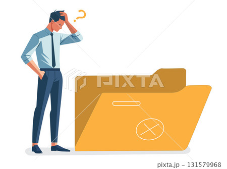 lost filesIllustration of a young man who is stressed, worried, and thinking hard.