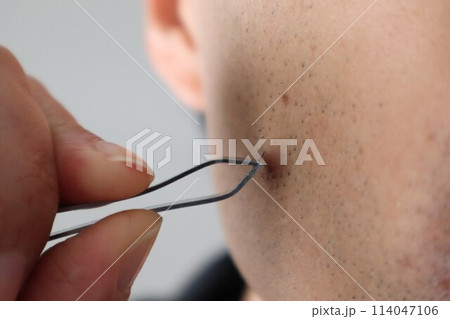 髭をピンセットで抜く人物