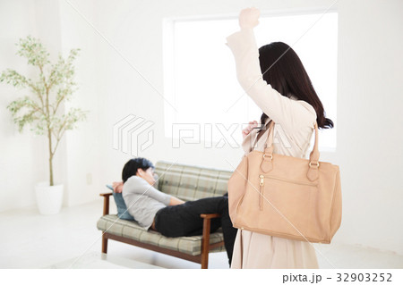 夫婦 無職 逆転夫婦 ビジネスウーマン カップル 女性 家族 男性 リビング