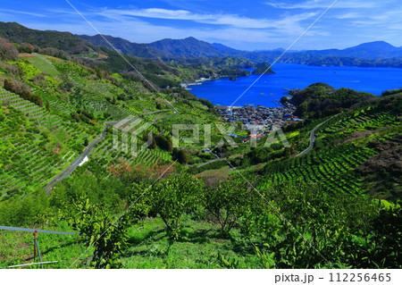 【愛媛県】晴天の宇和海狩浜の蜜柑畑