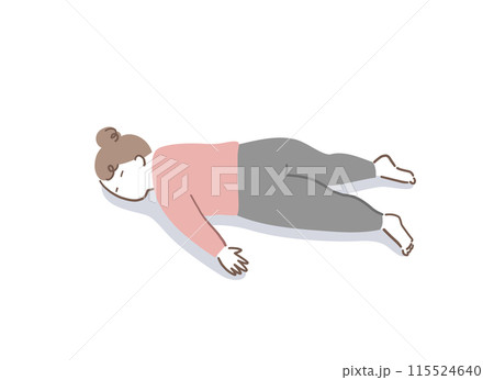 うつ伏せで寝ているぽっちゃり体型の女性のイラスト素材