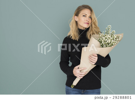 Woman Smiling Happiness Flower Bouquet Portrait Concept