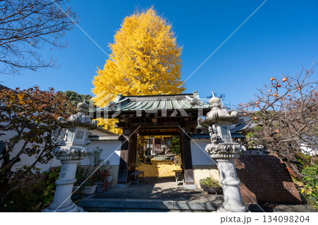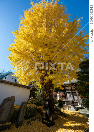 秋の遊行寺 青い空と黄金色の大銀杏