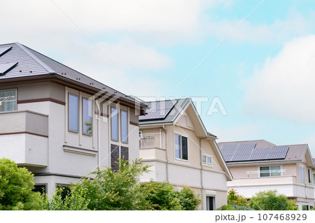 ソーラーパネルが設置された住宅街 無電柱化住宅地 空撮